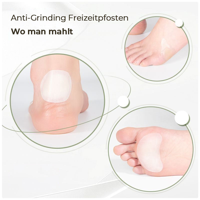 • Fersenschmerzpflaster: Entwickelt, um den Druck auf den Fersen- und Unterarmbereich zu lindern. Es verbessert die Durchblutung und lindert Abschürfungen und Belastungen an Ferse und Fußgewölbe.