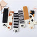• Erhältlich in 6 Farben:  Querbalken schwarz, Streifen grau, Punkte khaki, Punkte schwarz, Flach schwarz, Flach khaki