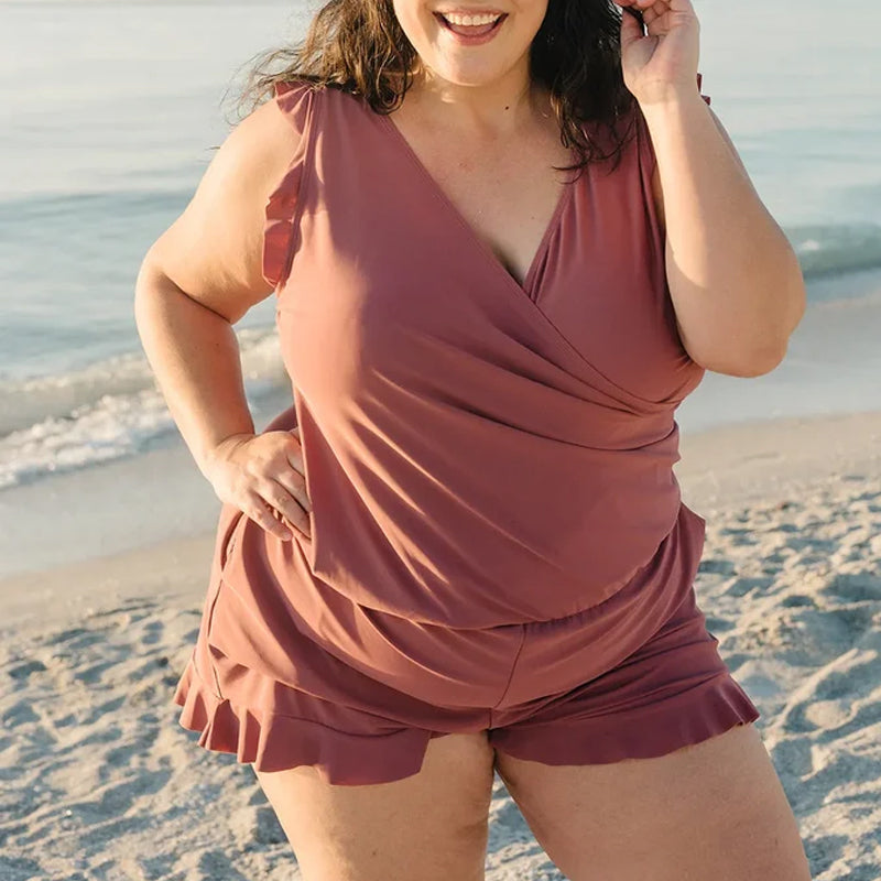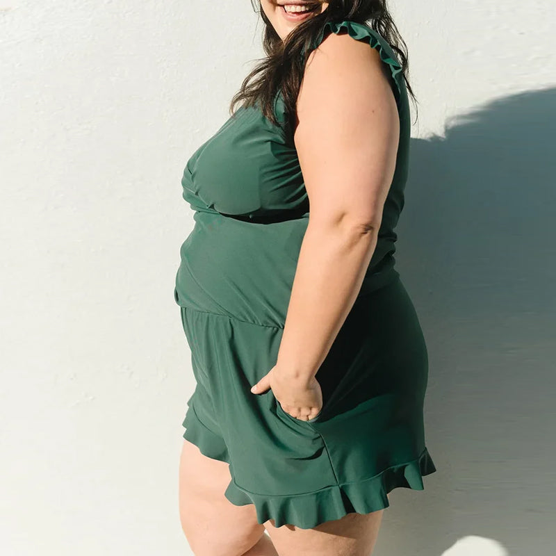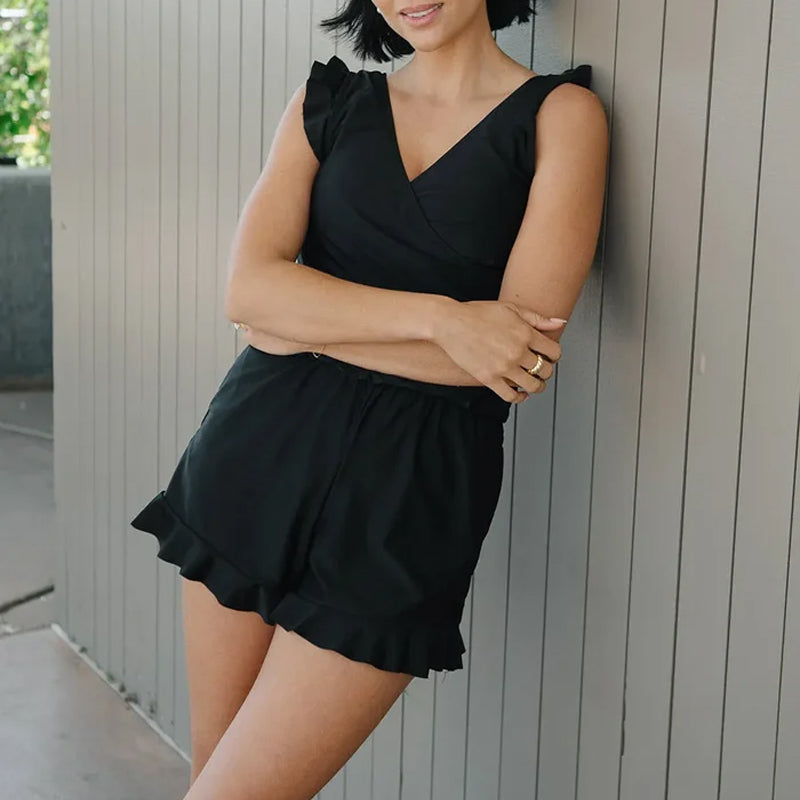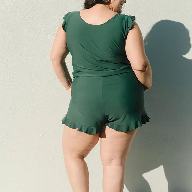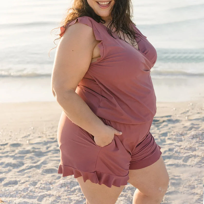 • Rüschenärmel und Shorts: Erleben Sie Eleganz und Flair mit den stilvollen Rüschenärmeln und Shorts und verleihen Sie Ihrem Strand- oder Pool-Look einen Hauch von Weiblichkeit.