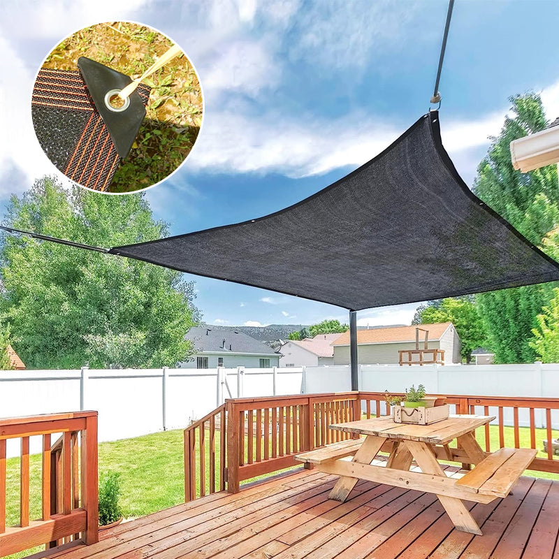 • Schattenrate: Unser Schattentuch widersteht Strahlen und den meisten Sonnenstrahlen, lässt aber dennoch die Luft zirkulieren und schafft so einen angenehm kühlen und schattigen Ort für Menschen oder Pflanzen.